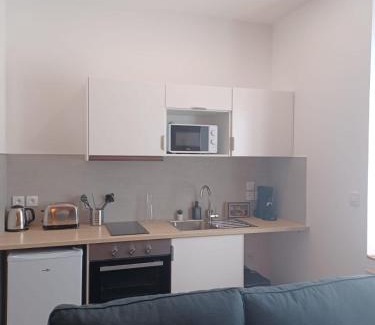 Mazamet - Studio neuf et moderne en centre-ville offers accommodations in Mazamet, 1.8 miles from La Barouge Golf Club and 11 miles from Castres Olympique. With free private parking, the property is 12 miles from Castres Exhibition Centre and 12 miles from Goya Museum. Stade du Travet is 13 miles away and Stade du Rey is 13 miles from the apartment. With free Wifi, this apartment offers a flat-screen TV, and a fully equipped kitchen with an oven and microwave. Towels and bed linen are featured in the apartment. The accommodation is non-smoking. National Center and Jean Jaurès Museum is 12 miles from the apartment, while Stade Pierre Antoine is 12 miles away. The nearest airport is Castres-Mazamet Airport, 6.8 miles from Mazamet - Studio neuf et moderne en centre-ville.