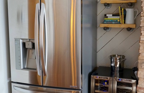All new appliances, including a large french-door stainless fridge & wine chiller combined with a fully stocked kitchen (new 4 burner fridigiaire cooktop + cosmo wall oven, microwave, indoor electric grill, toaster oven, Kruig coffee machine, blender..) are all included with maximum enjoyment of this quiet retreat in mind.