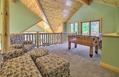 Discover the beauty of Northeast Michigan with a trip to this Curran vacation rental, where excitement awaits both inside and out! With a private dock just steps away from the 4-bedroom, 3.5-bathroom house, glide across McCollum Lake by kayak or bring your boat out for a spin. When you get off the water, unwind by the fire pit under the setting sun. Does anyone in your group have a competitive edge? The game room has options like air hockey and ping pong tables to get a friendly match going.