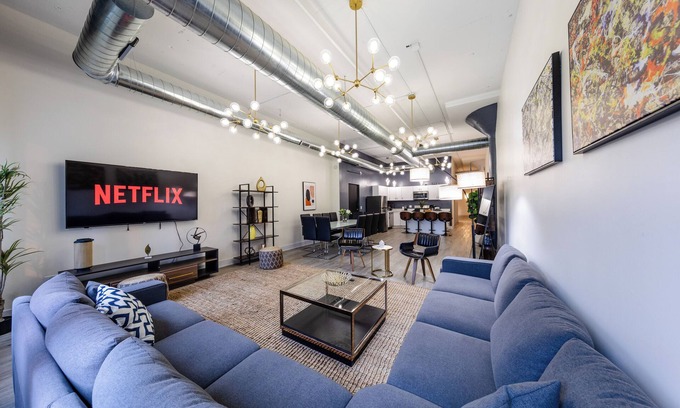 Designed with the traveler in mind, this 6 bedroom, 3 bathrooms luxurious Suite (Sleeps 12) caters all your needs in a modern, spacious layout with metropolitan decor that gives this suite a sophisticated edge. The Michigan Suite is thriving with downtown vibes. These suite offer guest a modern space with custom comforts that are a cut above the usual VRBO experience. Each room is uniquely designed to its own stylish accents and convenient amenities to give you the perfect mixture of home and away. At the premium status level, our suite provides you with a premiere experience in a premiere city.