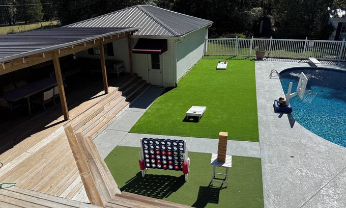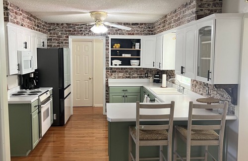 Enjoy the southern living of sweet tea sippin' on the front porch with a peaceful farmland and White Oak Mountain view. Bring your family and friends around back to enjoy our 12 person hot tub and underground pool. A grilling area and firepit perfect for S'mores. House is pet friendly and the area is nice to take your furry friend for a stroll. House is located minutes to popular wedding venues like Howe Farms, Five Gables, and The Gray Dove as well as great restaurants!
