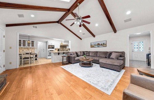 Escape to the tranquility of a spacious 4-bedroom, 3-bath home nestled in a quiet neighborhood surrounded by trees. Perfect for families, groups, or solo travelers, this inviting home offers comfort and space for any stay.