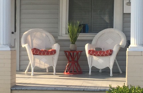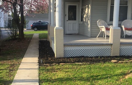 This 3-bedroom apartment is a unique first floor and basement apartment combination, in a Mechanicsburg Victorian home. Separate one bedroom suite in basement with private entrance, kitchenette and one bedroom with queen bed and master bath. First floor features a modern kitchen with large kitchen, stainless steel appliances, dishwasher and center island with bar seating for 2. The master bedroom is oversized with lots of closet space and a queen-sized bed. Bedroom 2 is a walk through bedroom and is used to access the main bedroom, so it is NOT a private bedroom. It is between the master bedroom and kitchen. It has a queen-sized bed along with a futon that folds down into a twin-sized bed. Off the kitchen is a living room with a table that seats four, a full-sized couch, and chair, a 50 inch ROKU smart TV with WiFi service from FIOS. The bathroom is off of the living room and has a large walk-in shower. Outside enjoy your covered wrap around porch with patio furniture and a porch swing. Private, off- street parking spaces are along the side and back of the yard, enough for 3 cars. Close by you'll find Rakestraw's ice cream shop is a 1/2 block away and Mechanicsburg's Main Street, which features multiple local restaurant favorites including JOJO's Pizza, Dad's Garage, Diener's restaurant 3-4 blocks away. Many other local and national favorites a just a short drive away.