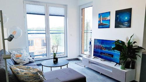 Meerblick - widok na morze is located in Puck, just a 6-minute walk from Dzika Beach and 16 miles from Gdynia Harbour. This beachfront property offers access to a balcony, free private parking, and free Wifi. The apartment also offers facilities for disabled guests. Offering a terrace and sea views, the apartment includes 2 bedrooms, 3 living rooms, satellite flat-screen TV, an equipped kitchen, and 2 bathrooms with a walk-in shower and a bath. Towels and bed linen are offered in the apartment. The property has an outdoor dining area. Outdoor play equipment is also available at the apartment, while guests can also relax in the garden. Shipyard Gdynia is 18 miles from Meerblick - widok na morze, while Gdynia Central Railway Station is 18 miles from the property. Gdańsk Lech Wałęsa Airport is 33 miles away.