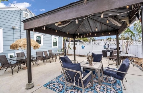 In addition to the Mellow Mermaid Cottage, you have your own large private patio and access to the larger courtyard for parties and larger get-togethers.