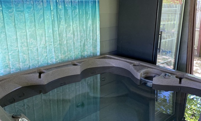 In the back patio/yard area we have a hot tub, charcoal grill, patio table, fire pit (w/complimentary wood), trash can, corn hole, & sun lounge area:)