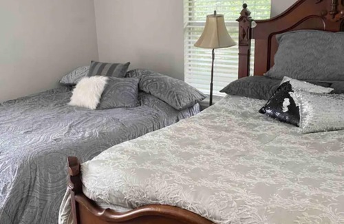 My beautiful 3 bedroom 2 bath home features a large pool and hot tub, and an arboretum with walking trails! But ABSOLUTELY NO PARTIES ARE ALLOWED. I live next door and I WILL ask you to leave if you try to host loud parties. I do not want to disturb the neighbors! Poolside pergola, BBQ pit, and wood-burning fire pit area. Massage chair, luxury master suite with spa tub. Fully equipped kitchen, laundry room, Wi-Fi, and pets allowed in the fully fenced backyard!