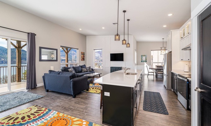 Your Lake Chelan modern palace awaits you when you book in the Penthouse Unit in Building 4. This 3-bedroom, 3-bathroom vacation rental condo is on the top level. A private elevator brings you and your supplies to one of the best views and nicest condo in Manson. This pristine Penthouse provides all the comforts of home, boasts stunning views, and features accommodations for 8 guests, making it the perfect choice for a family or close friends seeking a memorable trip.