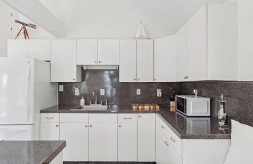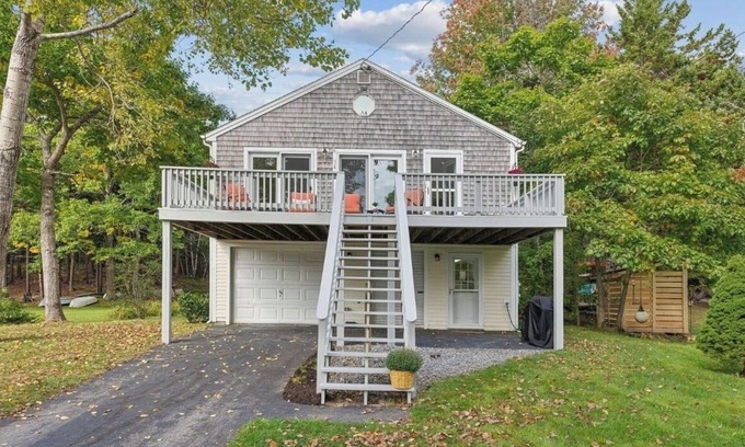 The cottage includes two beautifully decorated bedrooms with coastal charm and a full bathroom with a tub and shower. The lower level offers a bonus room for added entertainment space, a utility room with a washer and dryer, and a one-car garage. Outdoors, enjoy kayaks, lounge chairs, a fire pit, corn hole, and a hammock—perfect for relaxing or outdoor fun. Just a short walk from Paul's Marina and Mere Point Boat Launch, you'll have easy access to boating, fishing, and island hopping. Plus, the cottage is only a 12-minute drive from Brunswick, where you can explore boutiques, galleries, restaurants, grocery stores, and attractions like the Maine State Music Theater, Bowdoin International Music Festival, and the Bowdoin College campus and museums.