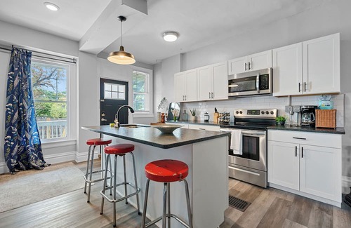 • This unit shares a building with 3 additional sister units. You may encounter other guests coming and going during your stay. Larger groups are encouraged to rent the parent unit/entire building, named Merion Village Residences Suites.