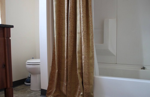 Indoors, we have a spacious living room with a place for chess or checkers, and library corner loaded with classic reads, and a selection of games and puzzles. Our dining room table seats six, and our well furnished kitchen includes an electric kettle, pour over coffee maker and a variety of hot beverage options. Enjoy dining on our vintage transferware, then pop them in the dishwasher.