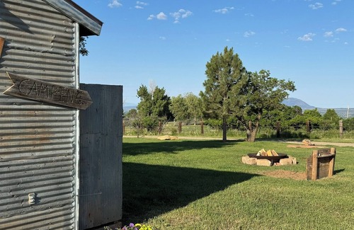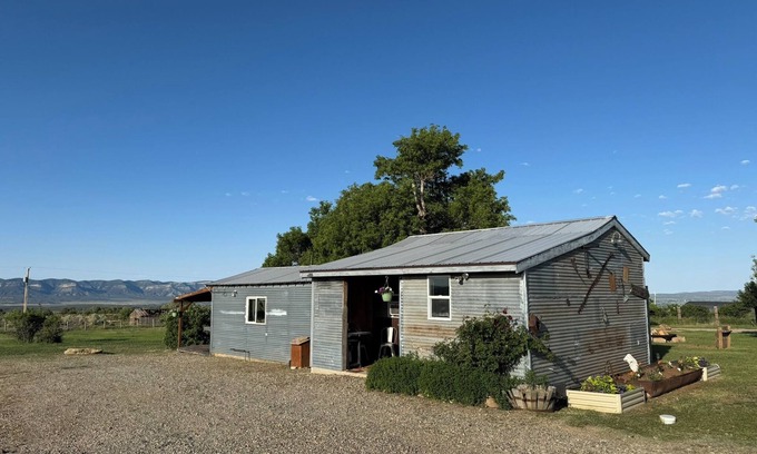 Panoramic Views of Spectacular Mesa Verde, nestled perfectly within the triangle of Cortez, Dolores, and historic Mancos in Southwest Colorado! Cowboy Cabin living at its best. Bring your horses, OHVs, all the toys. Peaceful view of three mountain ranges - Mesa Verde to the south, snow capped La Plata Mountains to the east, and the mystical Ute Mountain range to the west. Mesa Verde Cabin II can be booked in tandem with Mesa Verde Cabin I to accommodate four with optimum versatility!