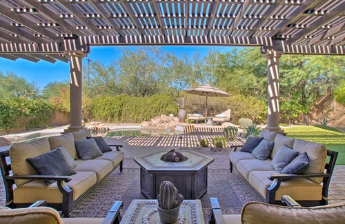 Positioned perfectly in the Las Sendas golf community, this beautiful 3-bedroom, 2.5-bath home is the ideal destination. The villa boasts a fully equipped chef's kitchen and ample space for the entire group to kick back. Fire up the grill after a long day of hiking local trails, or make your way into Phoenix for a night on the town. Although you may just want to spend most of your time in the backyard oasis, luxuriously equipped with a fire pit and a private pool that can be heated for a fee!
