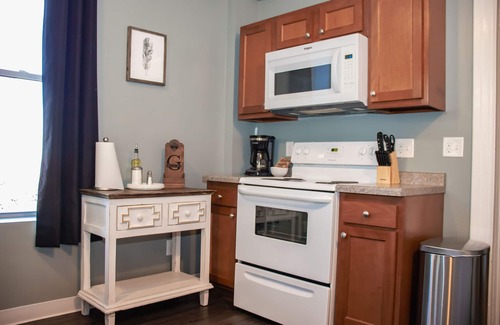 Our kitchen has all the basics for your cooking needs. A crockpot, coffee maker, griddle, pots & pans, blender, toaster, and all the needed cooking and baking utensils. To get you started we set you up with complimentary coffee bags from Duluth Coffee Company as well as a few beverages and popcorn.