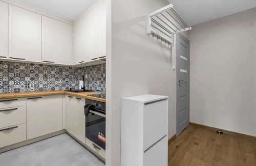 Metro Wawrzyszew Comfort Apartment has a living room with a sofa bed, a bedroom with a comfortable double bed, a kitchen, a bathroom and a spacious balcony, where guests can relax and enjoy their morning coffee or an evening glass of wine. Guests have various amenities at their disposal, including: free WiFi, satellite TV and Smart TV, a washing machine, an iron, a hairdryer, a dishwasher, a stove, an oven, a fridge with a freezer, a kettle and kitchen accessories.