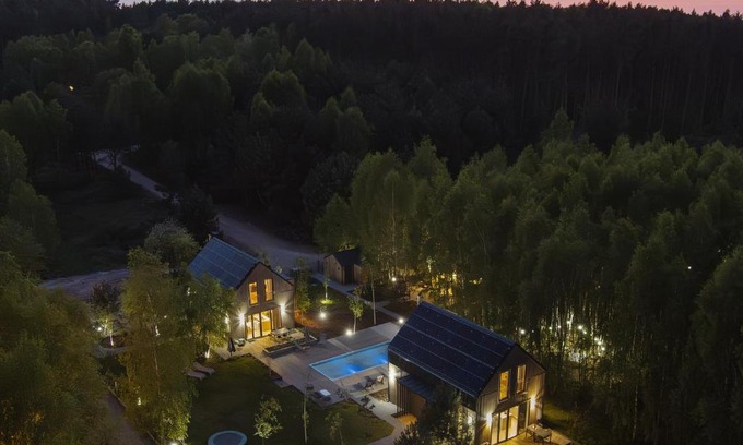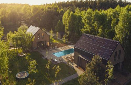 Między Brzozami / Domy w lesie offers accommodations in Ciekocino, 14 miles from Leba Railway Station and 22 miles from Teutonic Castle in Lębork. There's a private entrance at the villa for the convenience of those who stay. There's an outdoor fireplace and guests can access free Wifi and free private parking. The villa provides guests with a terrace, garden views, a seating area, satellite flat-screen TV, a fully equipped kitchen with a dishwasher and an oven, and a private bathroom with hot tub and a hair dryer. A toaster, a fridge, and stovetop are also offered, as well as a coffee machine and a kettle. At the villa complex, units have bed linen and towels. For guests with children, Między Brzozami / Domy w lesie features outdoor play equipment. Guests can swim in the infinity pool, go cycling or hiking, relax in the garden, and use the barbecue facilities. Stilo Lighthouse is 4.6 miles from the accommodation, while Łeba Park is 13 miles from the property. The nearest airport is Gdańsk Lech Wałęsa Airport, 50 miles from Między Brzozami / Domy w lesie.