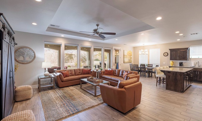 Mi Casa Es Su Casa is a splendid 2,512 sq ft luxury home nestled within The Ledges of St. George, offering a warm and inviting atmosphere for guests. With 3 bedrooms and 2.5 bathrooms, this well-appointed home is designed to accommodate both single and multi-family groups.