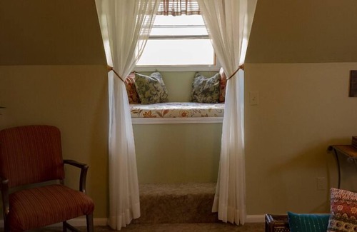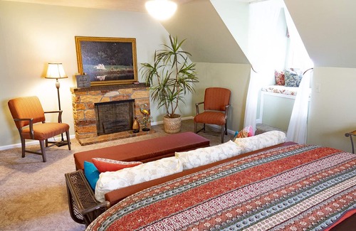 Located on the southeast corner of WoodField Hills Inn, Michael’s Room features an east facing window seat that streams in the early morning light to accompany the singing of birds outside. At the top of the stairs and then left, this room quite large, quiet and restful. This room also has a large closet.