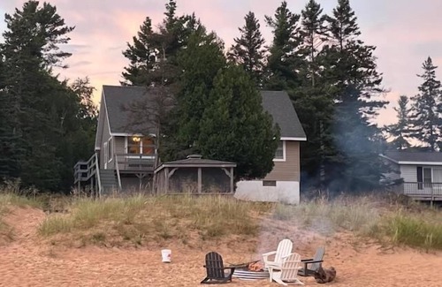 Escape to Michibay Getaway, a charming lakeside retreat right on the beach, located on the shores of Lake Michigan in Manistique. This cozy home sleeps up to 6 guests, with 2 bedrooms and 1 bathroom, offering the perfect space for families or small groups. Step outside and walk directly from the deck onto the beach boardwalk, leading you to your own private sandy beachfront access—perfect for relaxing by the water, soaking up the sun, or taking a peaceful stroll along the shore.
