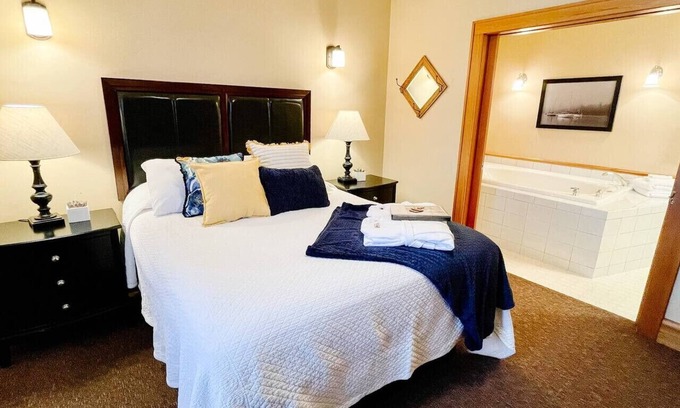 Michigan Suite: One of four upper-level queen suites located at the six unit Bayfield Guest House in the heart of downtown Bayfield. These suite style rooms are designed for couples and solo travelers looking for a relaxing getaway to Bayfield. The Michigan Suite is a queen suite with a spacious bathroom and jacuzzi tub.