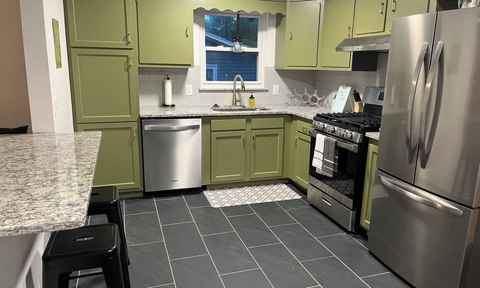 Located in Akron, this house is a gem. With 3 bedrooms including 2 queen beds and 1 futon, guests will have plenty of space. The 2 bathrooms are equipped with a shower and a hairdryer for convenience. Enjoy the fitness equipment in the basement, peaceful backyard, AC, and WiFi during your stay. Kick back and relax in this calm, stylish space. Recently renovated with every thing you need for a comfortable stay. This house is 11 minutes to Akron General Hospital. Only 14 minutes to Suma Health and 12 minutes to Akron Children's Hospital. Whole Foods, many other restaurants, and coffee shops are close nearby. Connect with nature by walking down Hawkins street and you are at the Sand Run Metro Park. 15 minutes to Akron University. You are in the center of all Akron has to offer here! Book now and enjoy everything this house has to offer.