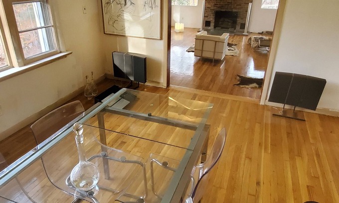 3 level mid century home with mid century furniture. Eames Bertoia, etc. Bang + Olufsin stereo, multiple 4k sets, echo, nest, chromecast.
