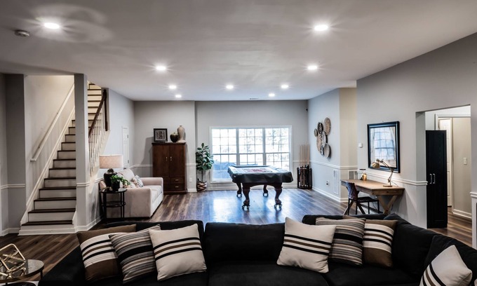 Step into our chic, spacious mid-century lower level flat that sits centrally. It boasts an open-concept living space, comfortable bedrooms, a fully-equipped kitchen, and state-of-the-art amenities. Located just 20 minutes from Lake Lanier and a short 10 minutes from scenic hiking trails, our flat offers the ideal blend of city conveniences and natural escapades. Experience the best of both worlds and make your booking today!
