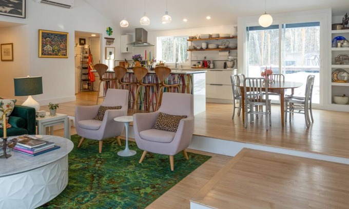 Indulge in style and comfort at our meticulously refurbished mid-century modern retreat in Rockport, Maine. Crafted by an accomplished interior designer, this gem in mid-coast Maine offers a chic escape or memorable family gathering.