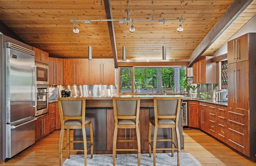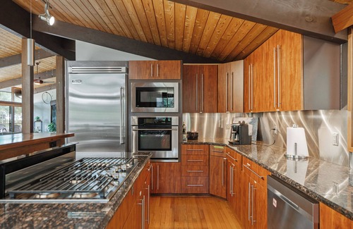Discover a hidden treasure at this one-of-a-kind 5BR, 3.5BA mid-century modern wooden dwelling, nestled on a picturesque lakefront. Revel in the harmonious blend of timeless allure and modern elegance, engulfed in abundant natural light. The open-concept layout, well-equipped chef's kitchen, and spacious bedrooms ensure a seamless living experience. Unwind on the deck, gazing at the tranquil lake and immersing yourself in nature's embrace. Conveniently situated, this property offers a private sanctuary with convenient access to amenities.