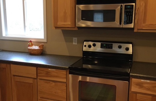 As you enter the cabin, the kitchen and great room area are to your right and the bedrooms are to your left. The large kitchen includes everything you'll need to make memorable meals. Your Kitchen includes full sized appliances including a dishwasher as well as a microwave, coffee maker and filters, toaster. Cookware, dishes and flatware are also included.