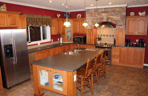 Our home has two large living areas each with its own tv (direct tv) and comfortable seating . Connected to a large fully equipped kitchen and dining room. The open floorplan keeps everyone together but plenty of room to do your own thing. Four bedrooms , two &1/2 baths , washer/dryer, wi-fi makes our home perfect for families or small groups to spend quality time together. .