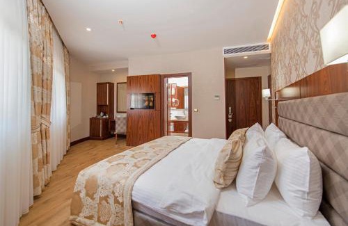 MidMar Deluxe Hotel features a shared lounge, terrace, a restaurant and bar in Istanbul. With a fitness center, the 4-star hotel has air-conditioned rooms with free WiFi, each with a private bathroom. The property provides room service, a concierge service and currency exchange for guests. All guest rooms are equipped with a flat-screen TV with satellite channels, an electric tea pot, a shower, free toiletries and a closet. Every room includes a safety deposit box and some feature city views. Staff speak Arabic, German, English and Farsi at the reception. Halic Congress Center is 9 miles from the hotel, while Blue Mosque is 10 miles from the property. Istanbul Airport is 22 miles away, and the property offers a paid airport shuttle service.
