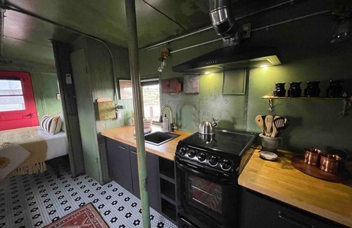 This train car is a unique space for everyone to enjoy! The space is small and privacy is limited when it comes to showering. It’s the real cowboy experience you might become quite smitten with.