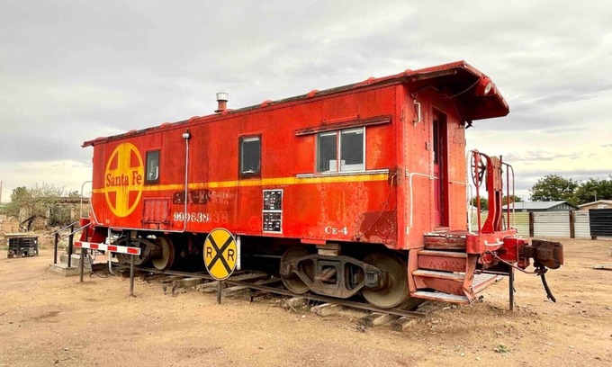 The ‘Midnight Train to Marfa’ is a Vintage 1948 Santa Fe Caboose nestled on two large lots facing fantastic ranch views and the romantic stir of the Railroad train.