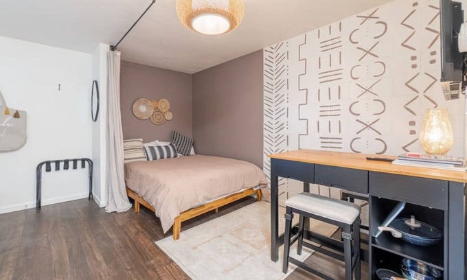 This charming studio is thoughtfully designed to provide you with everything you need for a memorable stay. A spacious and comfortable living area with a cozy queen-sized bed promises a restful night's sleep after you've experienced the excitement of Midtown.