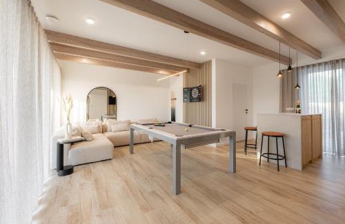 1.1 miles from Mielno Beach in Mielno, Mielnovo - dom z basenem, sauną i jacuzzi features accommodations with access to a sauna and hot tub. This property offers a private pool, free Wifi, and free private parking. The accommodation provides a shared kitchen and a shared lounge for guests. Featuring a terrace, this vacation home also comes with a flat-screen TV, a well-equipped kitchen with a dishwasher, an oven, and a microwave, as well as 5 bathrooms with a hot tub and bathrobes. The property has an outdoor dining area. For guests with children, the vacation home offers both an indoor and outdoor play area. Guests at Mielnovo - dom z basenem, sauną i jacuzzi can enjoy billiards on-site, or walking tours in the surrounding area. Town Hall is 26 miles from the accommodation, while Kołobrzeg Railway Station is 26 miles from the property. Solidarity Szczecin-Goleniów Airport is 86 miles away.