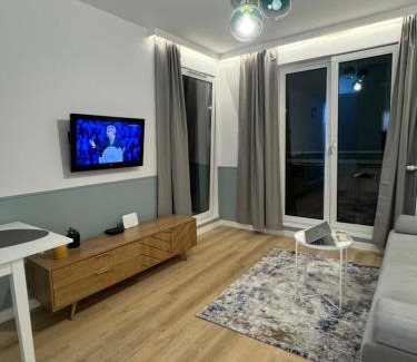 Mieszkanie Gdańsk Blisko Centrum offers accommodations in Gdańsk, 3.6 miles from St. Nicholas Roman Catholic Church and 3.6 miles from Green Gate. This property offers access to a balcony and free private parking. Neptune Fountain is 3.8 miles from the apartment and Long Market is 3.8 miles away. With free Wifi, this 1-bedroom apartment features a satellite flat-screen TV, a washing machine, and a fully equipped kitchen with a dishwasher and oven. Towels and bed linen are available in the apartment. The property has an outdoor dining area. Guests can also relax on the sun terrace. Long Bridge is 3.6 miles from the apartment, while Zuraw Medieval Port Crane is 3.8 miles from the property. Gdańsk Lech Wałęsa Airport is 7.5 miles away.