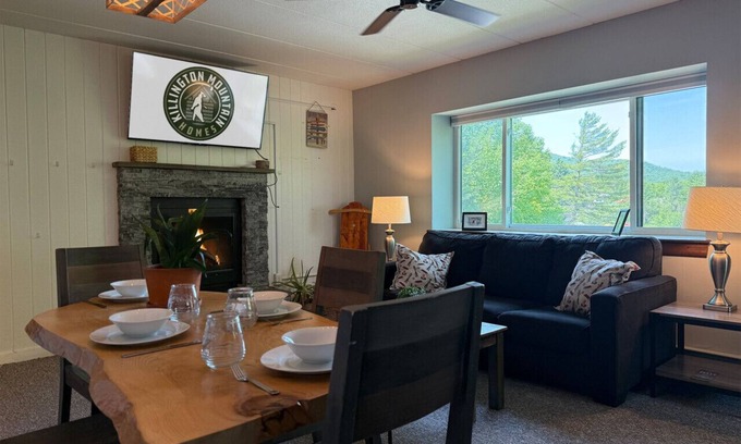 Welcome to MightyMoose, a 2-bedroom, 1.5-bath corner condo at Mountain Green Resort in Killington, VT. Enjoy quiet golf course views, a renovated kitchen, and updated bathrooms stocked with essentials. The primary bedroom has a queen bed, the second has a full and twin, and the living room offers a cozy couch, electric fireplace, and Roku TV. Resort amenities include indoor/outdoor pools, gym, spa, sauna, and a winter shuttle to the slopes—just a half-mile walk to the base lodge!