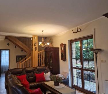 Mikołajówka - przytulny dom z widokiem offers accommodations in Świeradów-Zdrój, 11 miles from Death Turn and 12 miles from Izerska Railway. This property offers access to a balcony, free private parking, and free Wifi. Szklarki Waterfall is 14 miles away and Kamienczyka Waterfall is 14 miles from the apartment. Offering a terrace and mountain views, the spacious apartment includes 4 bedrooms, a living room, satellite flat-screen TV, an equipped kitchen, and 2 bathrooms with a hot tub and a bidet. Guests can enjoy a meal on an outdoor dining area while overlooking the garden views. The accommodation is non-smoking. Dinopark is 12 miles from the apartment, while Szklarska Poreba Bus Station is 13 miles from the property. Copernicus Wrocław Airport is 86 miles away.