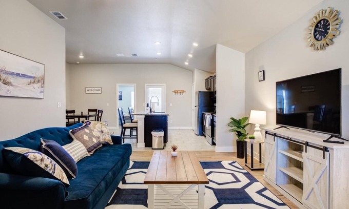 Nestled in Lubbock, this 3-bedroom, 2-bathroom vacation home brings it all within your reach. Fans of nature and the outdoors will love being 12 minutes by car from Lake Alan Henry and 24 minutes from Buffalo Springs Lake. With convenient nearby parking, you'll be ready to make the 13-minute drive to South Plains Mall or the 10-minute drive to Buddy Holly Center.
