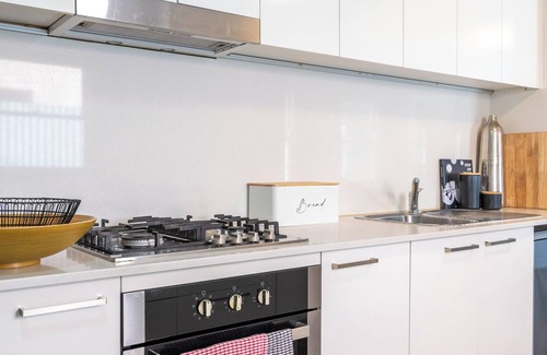 The Miller’s on Kent III exudes heritage and originality. The fully equipped stainless steel kitchen seamlessly connects with the living area, catering to groups of up to 10 people.