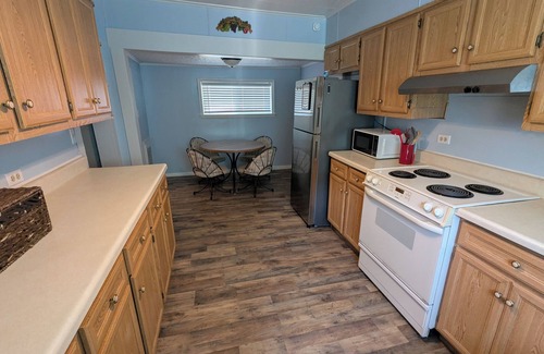 Get ready to relax in this quit neighborhood house just one mile from the nearest HMT trailhead. Marvelous bedroom details include 2 queen beds and 1 twin bed (twin room entrance is located in bedroom 2) perfect for a superb night's sleep. A full kitchen awaits your dinner creations. Wash and dry your clothes so you don't have to pack much. Sit on the front porch and enjoy the views. Parking is limited, shorter trailers only (trailer parking under carport).
