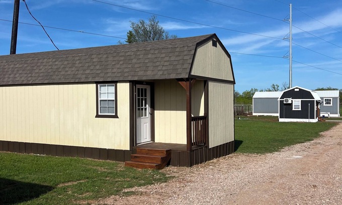 Discover the gorgeous landscape that surrounds this place to stay. Welcome to one of our tiny homes located in the country. This cute studio mini offers sleeping with 1 twin bed and 1 queen bed. This unit includes a full kitchenette with all major appliances including a w/d for free use in the unit. There is 1 smart TV located in the unit with WiFi included. Come enjoy a stay under the stars and enjoy the lovely country views and sunsets. This home is located directly off of Highway 287.