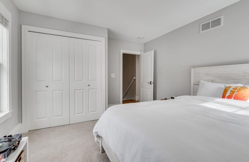 There are three bedrooms upstairs, starting with the bright primary bedroom with views of the water. It boasts a king size bed, Roku TV, and a full bathroom en-suite. The en-suite has a large, spacious vanity and a walk-in shower, with dual opposing shower heads for decadent comfort. Across the hall, the two queen bedrooms include Smart TV's with Roku integration, and sit adjacent to the third full bathroom, with bright tiling, a wide vanity with extra drawer space, and a bathtub + shower combo. With high speed internet for those who need to stay connected, all four Smart TV's offer live cable channels (including live local network stations) through Hulu Live TV, plus Netflix, Disney+, ESPN+ and HBO Max.