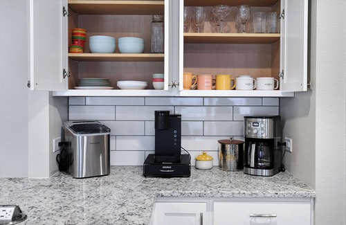 The kitchen is very well-equipped with all of the cooking essentials, major appliances, and smaller ones including a blender, waffle maker, microwave, kettle, and 3 coffee makers. We have a Keurig, a brew coffee maker (with gold filter - no paper filters), and a French press. Coffee is provided as well!