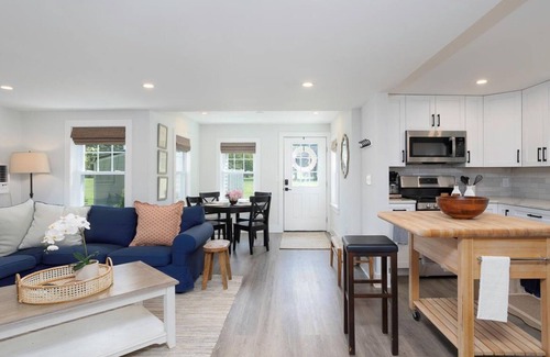 This bright and airy 2-bedroom, 2.5-bath vacation farmhouse minutes from Downtown St. Michaels is your haven for comfort and relaxation. The open-concept layout boasts a character-rich interior, perfect for entertaining in the spacious living area featuring a beautifully maintained, fully equipped kitchen. Step outside to a tranquil hardscape patio, overlooking manicured gardens and a sprawling backyard – ideal for morning coffees or evening cocktails.