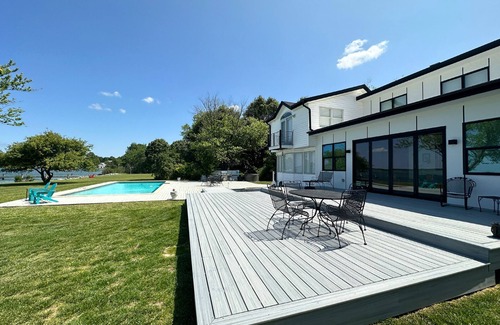 Between the house and the waterfront, there's ample space for unwinding on the hammock, playing a pickup game of soccer, searching for crabs or fossils on the 300-foot shoreline or lounging around the pool - all of which is visible from the kitchen and great room - perfect for keeping an eye on the kids while cooking or entertaining.