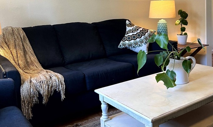The Getaway features hardwood floors, updated kitchen and bathroom, and has been warmly decorated with everything you need. All that's missing is you!
