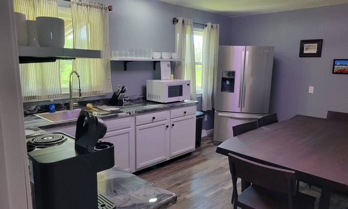 Relax with the whole family at this peaceful Kentucky themed house in the country. Located in the country but only minutes from Russell Springs or Jamestown and only 19 minutes from the Jamestown Marina. There is a fully equipped kitchen. It has plenty of space for everyone and a driveway large enough for boats.