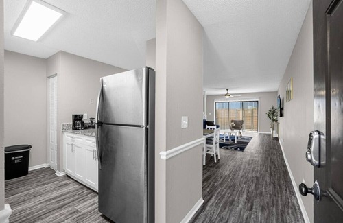 Indulge in comfort in this 2 bedroom 2 bathroom home centrally located in Tampa. Situated near the University of South Florida and Busch Gardens, this unit features a spacious living area with a 50" Roku TV, 2 memory foam queen beds, as well as a 32" Roku TV in the master bedroom. A reserved parking spot is included at no extra cost. Take advantage of amenities like the community pool, game room, and gym. Need to work remotely? A designated workspace is provided for your convenience.